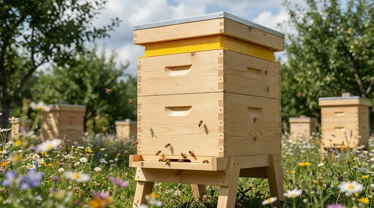 Un soporte de colmena es una base opcional pero muy recomendable que eleva toda la colmena del suelo. Este simple acto mejora la circulación del aire, disuade a las plagas como las mofetas y reduce la absorción de humedad del suelo, lo que contribuye a una colonia más sana.