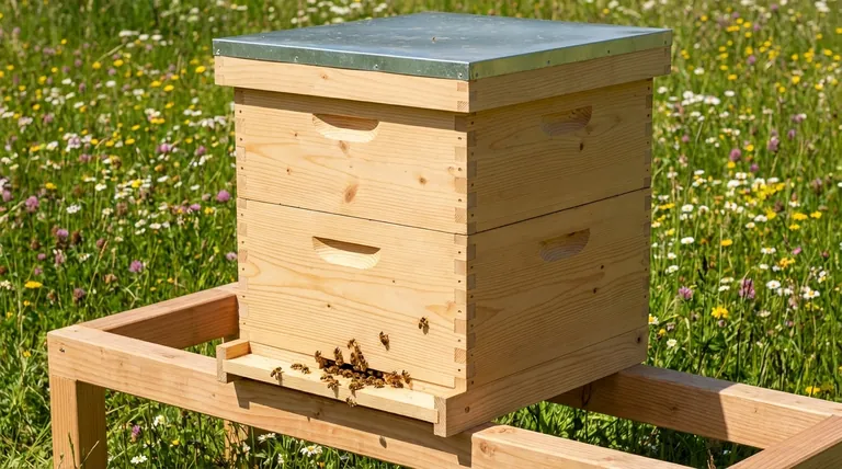 En términos sencillos, un cuerpo de colmena es la caja principal en una colmena Langstroth que sirve como el alojamiento de la colonia. A menudo llamada la "caja de cría", aquí es donde la abeja reina pone sus huevos y donde las abejas obreras crían a las jóvenes (la cría). También funciona como la despensa principal, almacenando el polen y la miel que la colonia necesita para su supervivencia inmediata.
